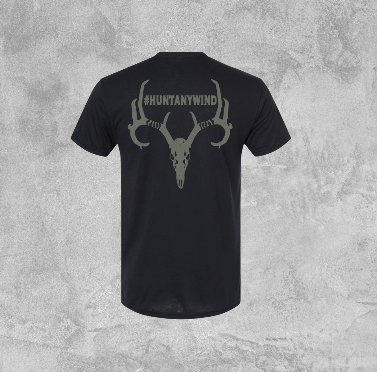 Sport the Anywind T-shirt featuring a bold deer skull with a bloody handprint graphic on the full back. This eye-catching design combines rugged style with the spirit of the hunt. Perfect for showing off your outdoor passion, whether you're on the hunt or off the grid. Grab yours today and make a statement!